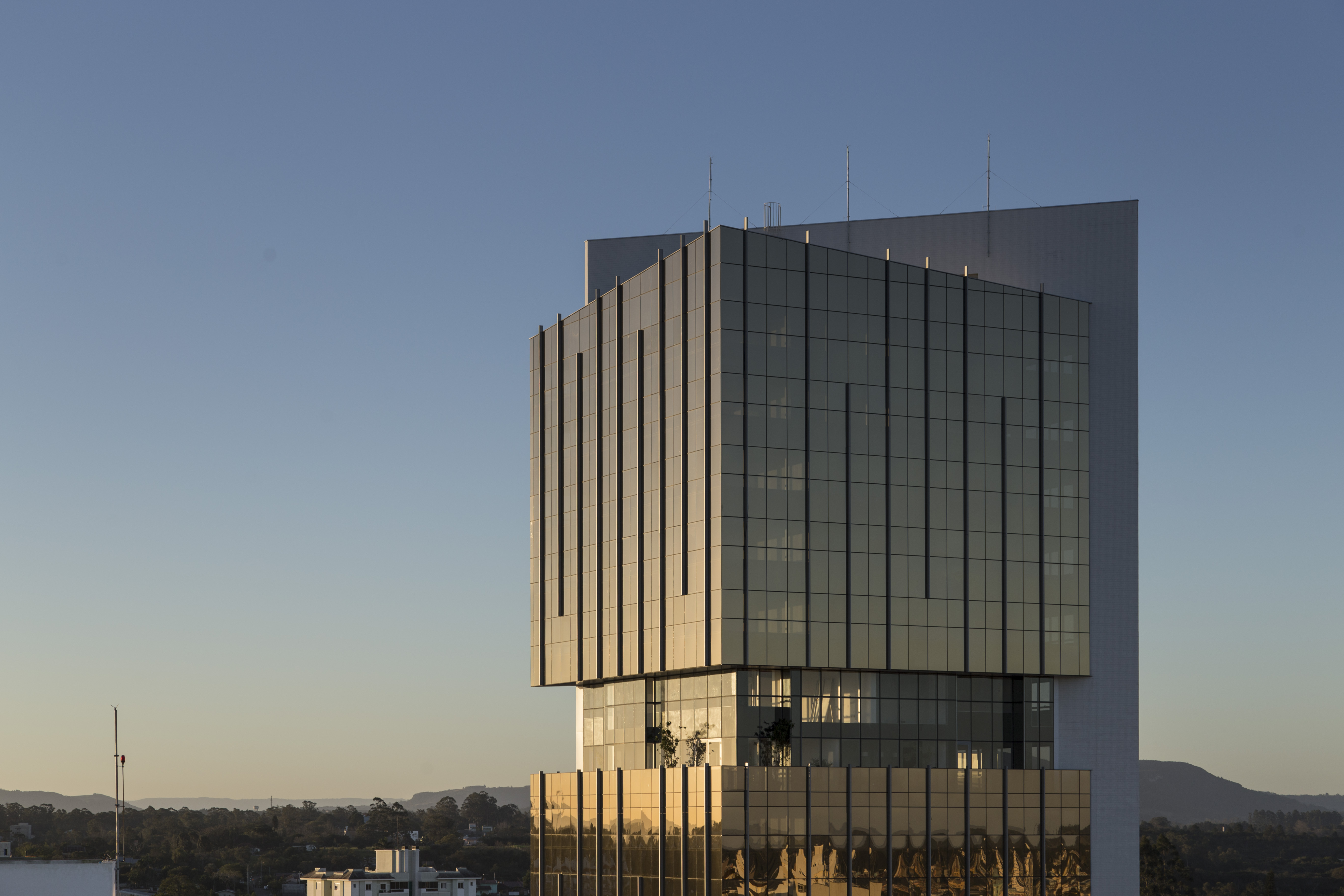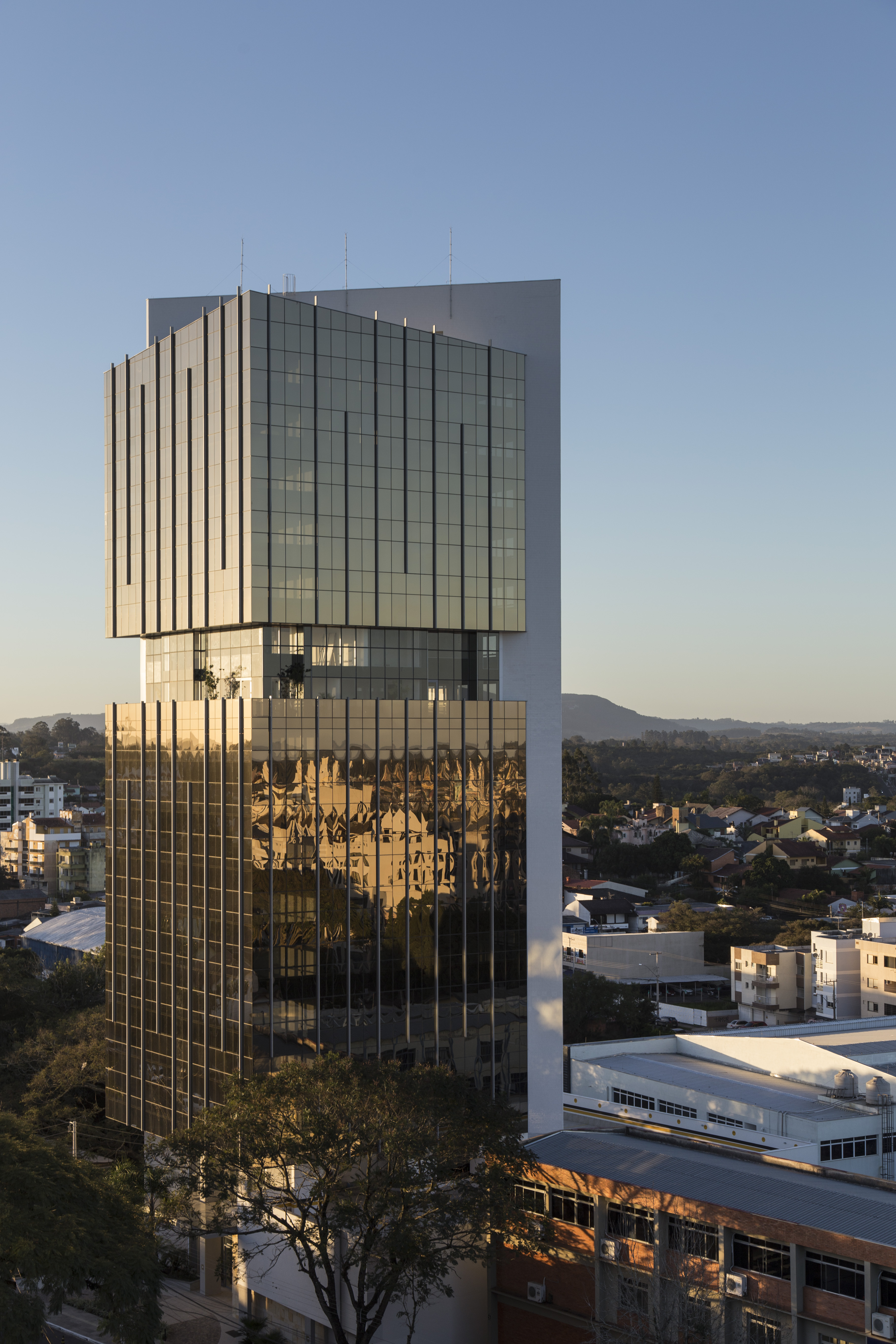 O Golden Tower é um empreendimento comercial, de alto padrão corporativo, que alia um design elegante tecnologia de ponta. Conceitualmente, o projeto é composto por dois volumes prismáticos gerados através de um cubo perfeito, o volume frontal de vidro reflexivo, entra em contraponto com o volume mais sólido e monolítico da fachada lateral, criando um clássico na cidade de Gravataí.