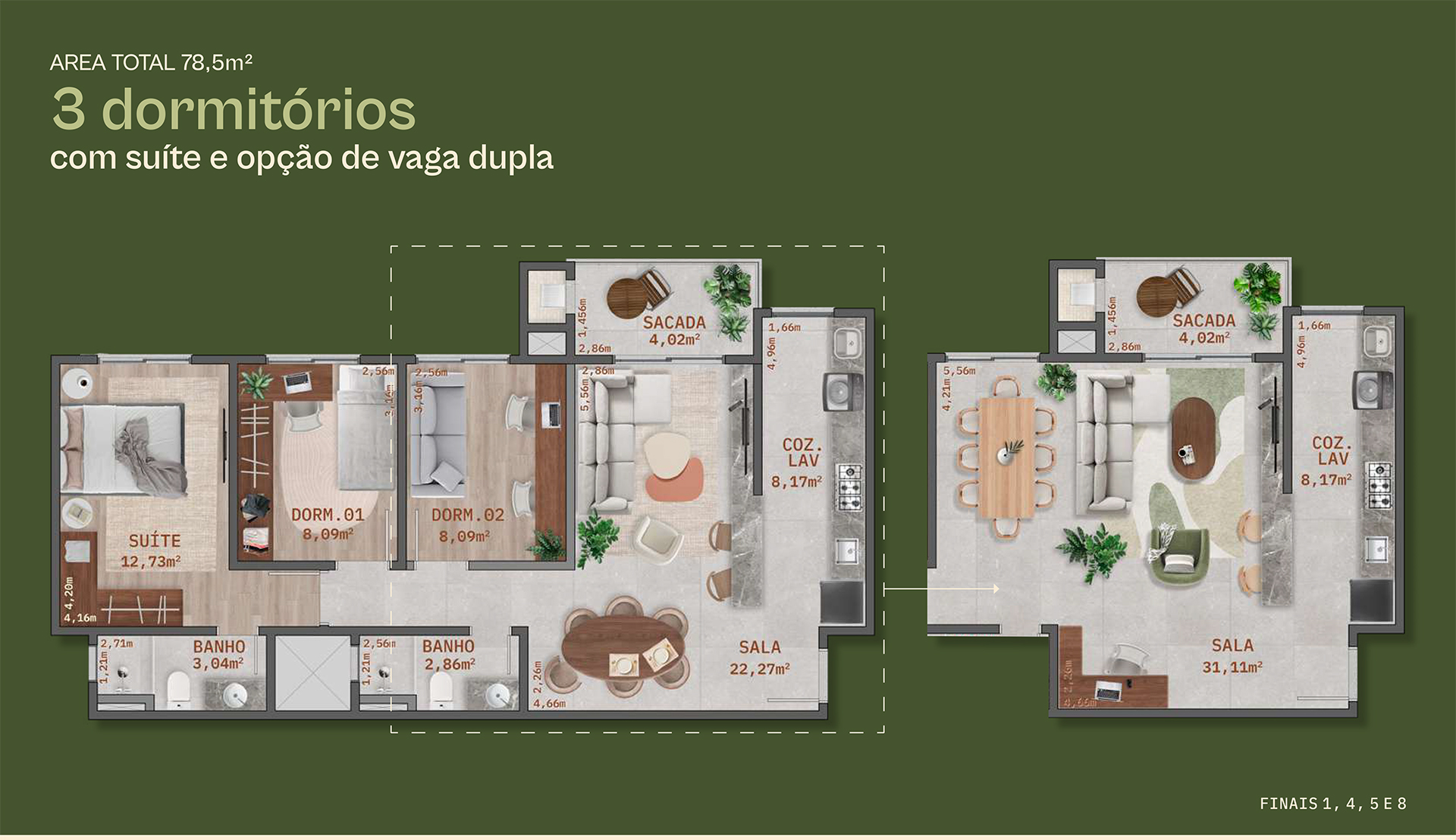 Espaços pensados para viver com conforto, onde a vida desacelera e encontra espaço para respirar. Mais de 1.400mª de área de lazer planejadas área reunir pessoas, criar memórias e aproveitar cada momento com tranquilidade. Um endereço com a solidez da Finger Engenharia e Construções, para quem quer viver bem, perto de tudo e com o equilíbrio perfeito entre estética, função e localização. São 96 Apartamentos de 2 e 3 dormitórios, com suíte, opção de living estendido, sacada com churrasqueira e infraestrutura completa. Design moderno e diferenciado assinado por Torres Arquitetos, o mesmo escritório do Golden Tower, premiado mundialmente. Venha conhecer!